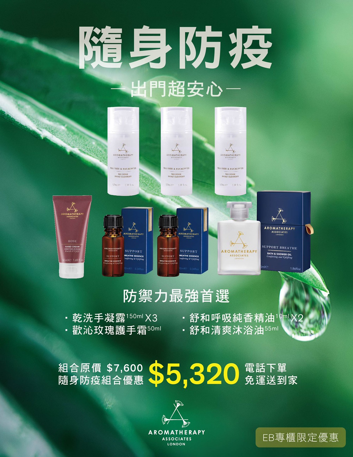 只要聯絡全台EB專櫃,便可享受滿額免運的貼心服務。更推出達7折的防疫限定優惠,讓您居家外出都安心!
